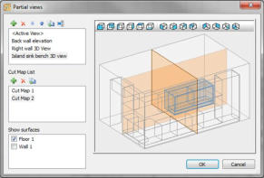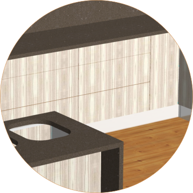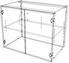 Shadow line cabinets with cut-outs for rails, and adjustments for