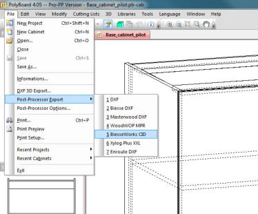 Polyboard can export files in a variety of formats and has a powerful post-processor that creates files redy to be imported into your CAM software.Cutlists are exported seamlessly into our own Opticut Saw optimisation softwareand in addition, there is a generic CSV export format for cut-lists, that will connect to most sheet optimisers or even for loading into excel spreadsheets.The Post-processor can create generic DXF part files that are compatible with most generic CAM software. E.G. Enroute, Cadcode, and of course our own Pratiko CAM software.Part files are also produced for manufacturer Specific CAM software Eg: CID3 files, for Biesseworks/ Biessenest, MPR files for Homag / Weeke Woodwop, XXL files for Xilog Plus - SCM / Morbidelli Machines.Polyboard also connects seamlessly to our own Optinest Nesting Software, for automatic import of parts and automated nested based manufacturing (NBM) factories.