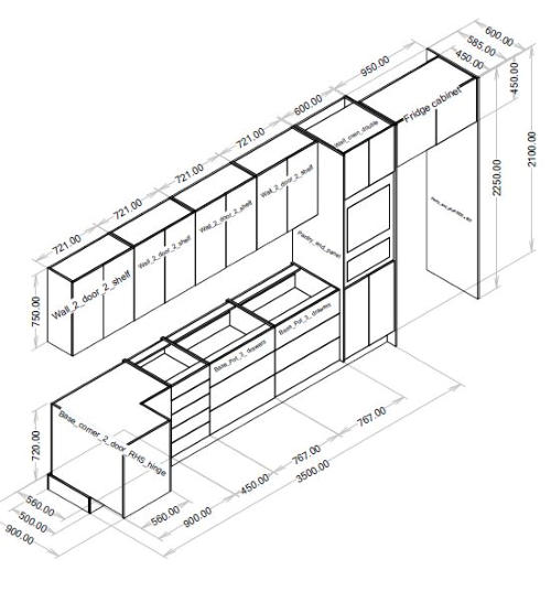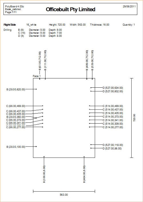 Polyboard Automatically generates shop drawings and elevation views of both individual cabinets and entire projects or rooms. Cabinet dimensioning in these drawings is automatic and elevation view from any side can be generated as well as 3D views from any angle or viewpoint. Extra Dimensions can also be added in using the multifunction measuring tool.Individual cabinets drawings can be generated with multiple views on a single page with particular views including 3d angle views fully configurable by the user.