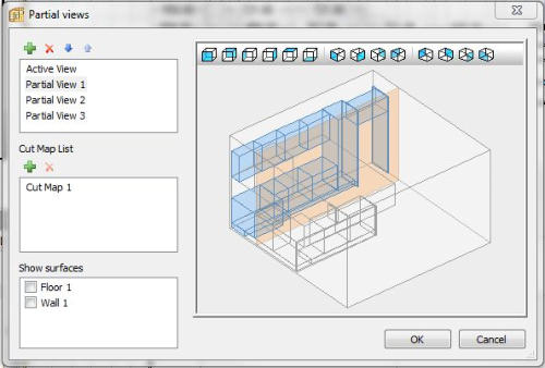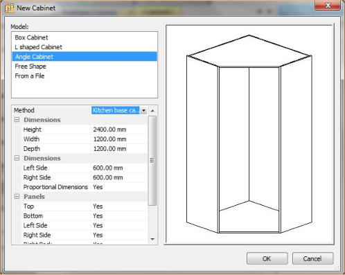 Easily create your own custom cabinets, while maintaining parametric rules between parts. Control and resize overall cabinet from properties dialog.Uses the ‘zone’ or ‘cells’ system where you can select any area within the cabinet and access the drop down menu allowing you to easily add cabinet components including: shelves, dividing panels, doors and drawers.Add “double back” panels to create double sided cabinets.Add “free divisions” to create panels and selves with slopes at any angle.Easily create “unboxings” in cabinets so that they fit around columns in a few selections or even sloped cabinets by just setting an angle to the top or side parts.Use the predefined regular, corner, L shaped cabinets, or design your own multi sided cabinet, and easily drag and drop to adjust cabinet shape.