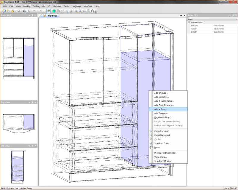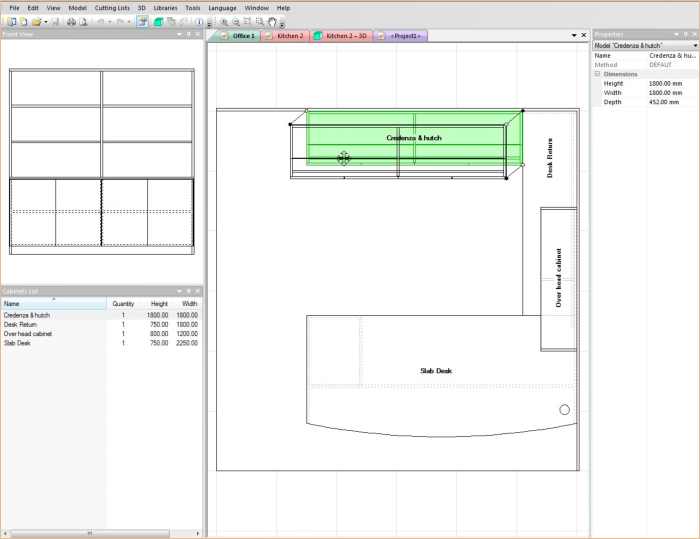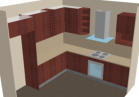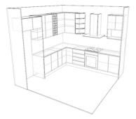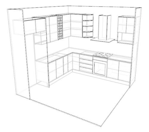 Polyboard has the ability to allow you to arrange cabinets in a 3d space representing as room such as a kitchen or an office or bedroom.The user can easily design floors and walls. textures such as tiling or wood grains can be applies to these features. Cabinets can be positioned using simple drag and drop technique with automatic alignment with adjacent walls or cabinets.In addition textures such as wood-grains can be applied to cabinet parts. and a transparency value can be set for materials to allow you to view internal cabinet parts and machining operations in the 3D view.The 3D view can be customised in various ways including wireframe and semitransparent views and the ability to switch between Perspective and orthogonal drawings.