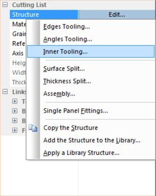 Edit part structure menu